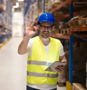 • Wearing PPE including brightly coloured vests and anti-skid shoes