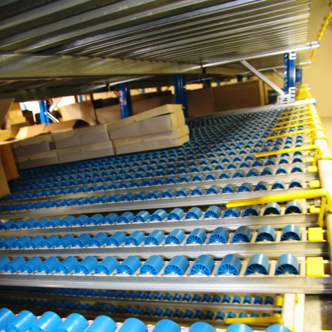 “Roller [cartonised storage] shelves are great for rotation of stock. You load it up at the back and throw the box away. It means there’s less wasted space – you can customise the widths to what we need for each product.”