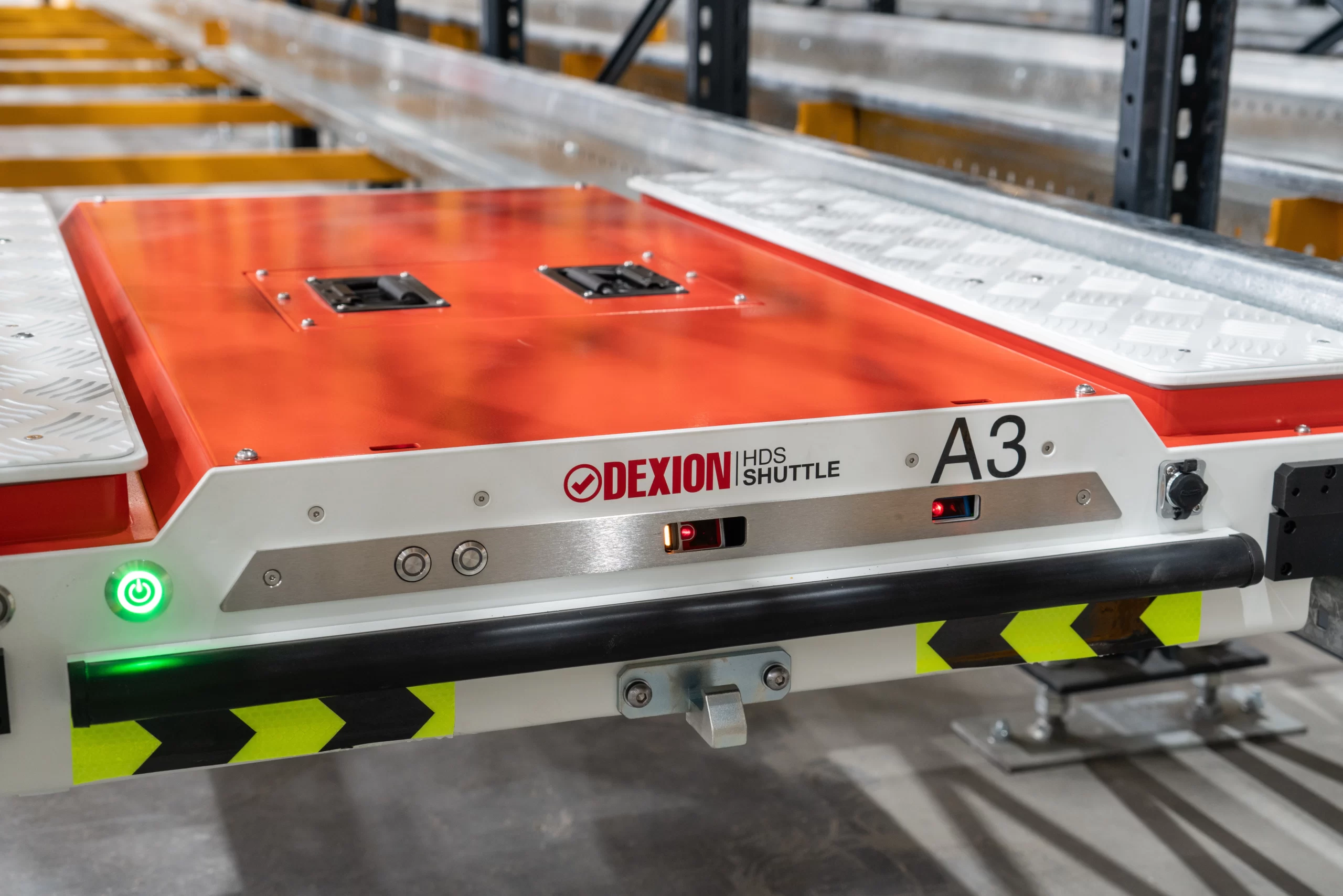 Highly efficient alternative to drive-in racking, semi-autonomous pallet shuttle eliminates the need for forklifts to navigate aisles.