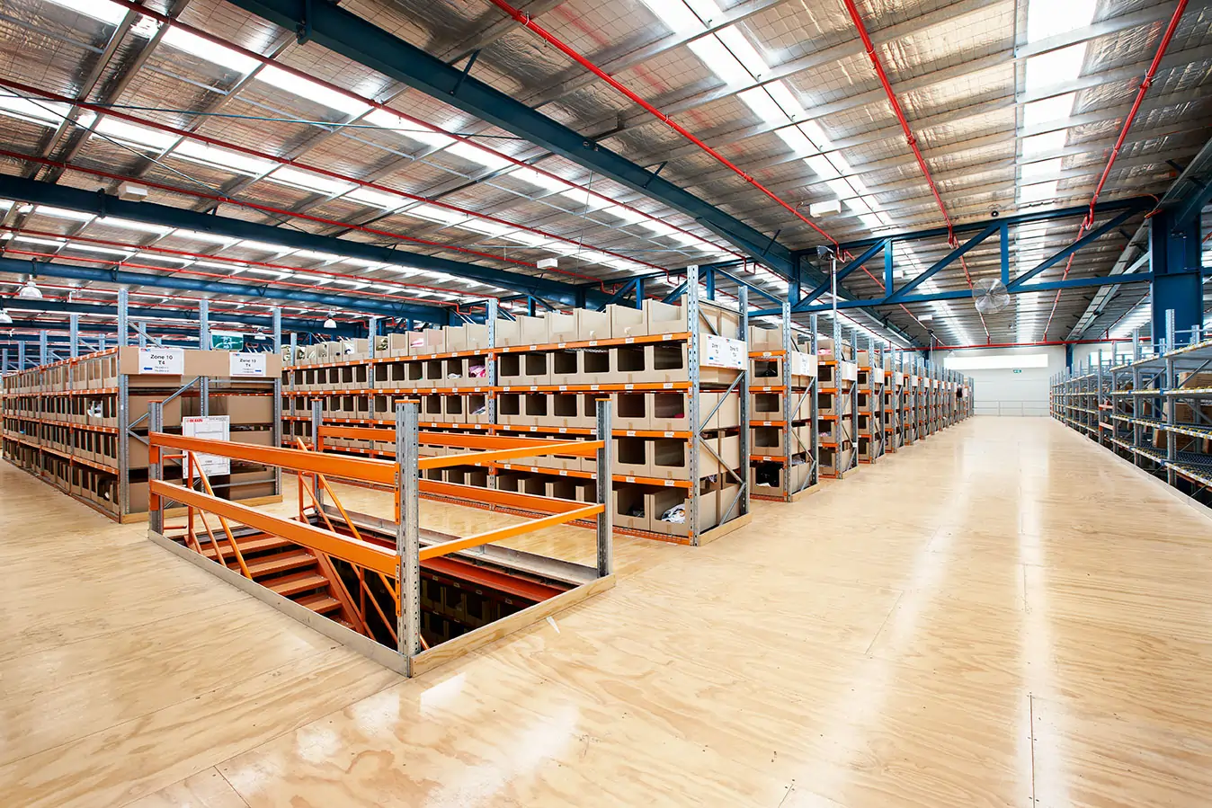 Create tiered platforms for multi-level picking access. Made from either mesh grated steel or ply flooring, the platforms enable more efficient material flow and can harness a conveyor system.