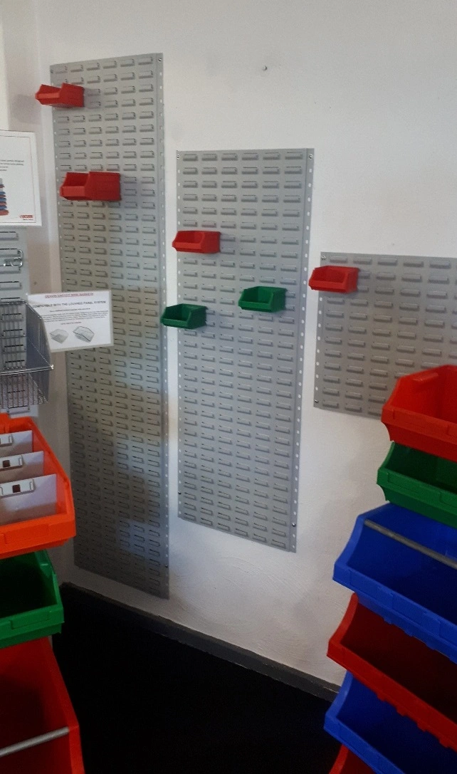 Double sided panels great for segregation or a workshop area, utilising the panels for organising of small parts storage.